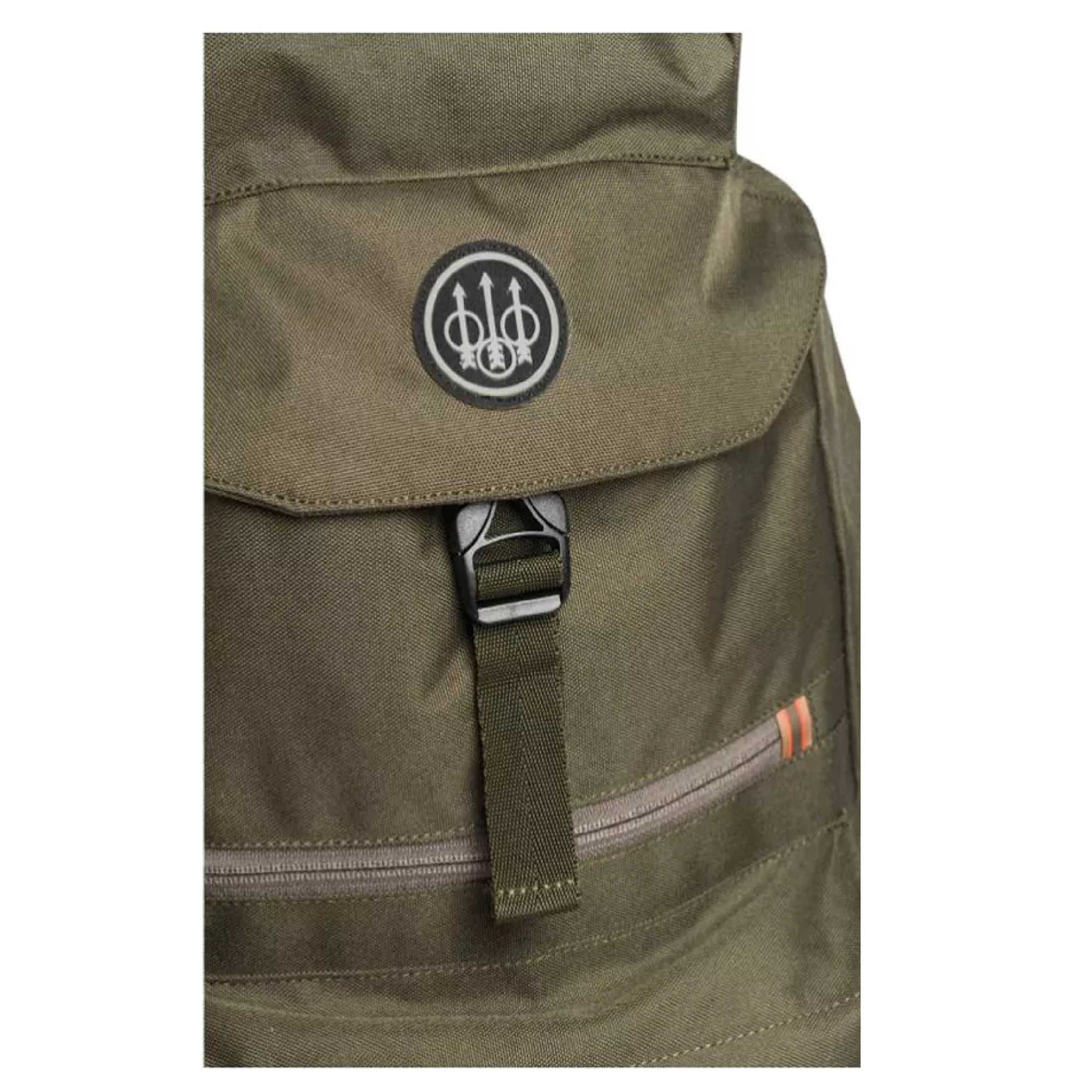 Раница на италианската фирма Beretta, модел Green 25L. Мултифункционална раница с вместимост 25 литра, изработена от здрава материя, подходяща за различни нужди на ловеца. Всеки детайл е проектиран да предлага максимална функционалност. Има капак и се закопчава с катарама. Има горен джоб, 3 странични джоба с YKK цип, подплатена опора за гърба, подплатени презрамки и регулируеми дръжки. Изработен от висококачествена, здрава и водоустойчива материя 100% полиестер в зелен цвят.