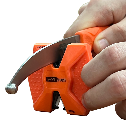 Двустъпковото заточващо устройство за ножове AccuSharp® Carbide-Ceramic разполага с предварително наклонени диамантено-шлифовани волфрамово-карбидни остриета и фини керамични пръчки, които поддържат прецизен ръб. Само три или четири движения през грубия отвор възстановяват острието, след което три или четири движения през фините пръчки завършват и полират финия ръб за гладко, остро покритие. Предлага се в ярко оранжево в дисплей за 24 броя.